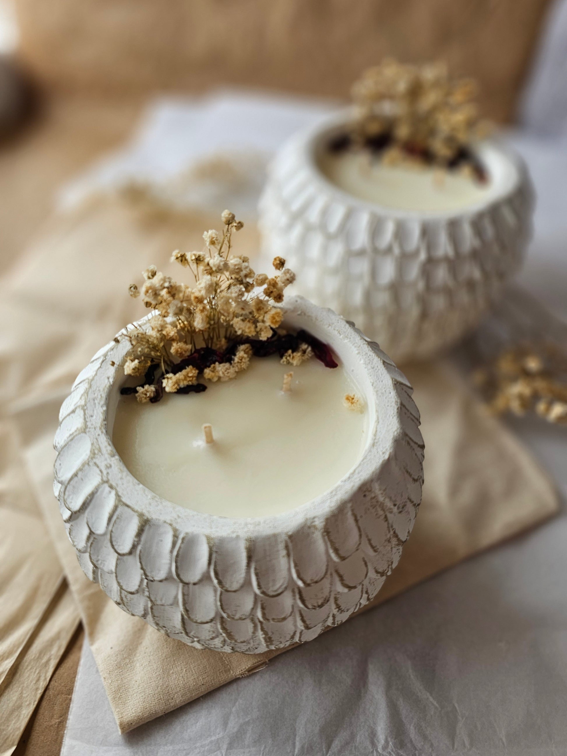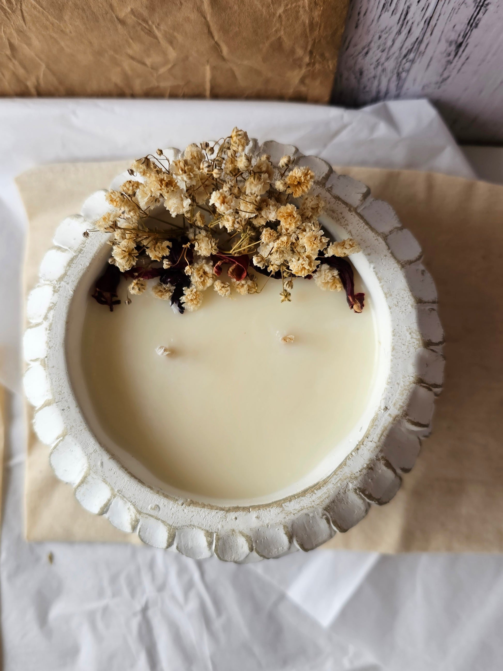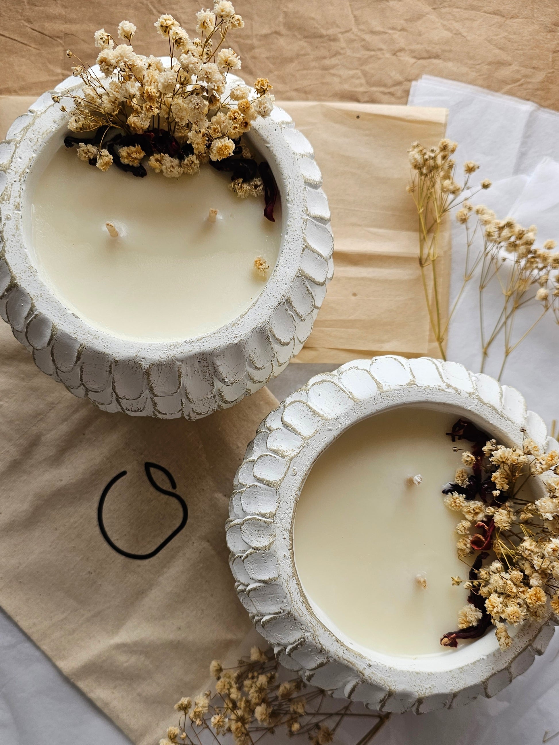 Introducing our exquisite White Dahlia Candle. Inspired by the captivating beauty of the White Dahlia flower and hand-poured with the harmonious blend of Sandalwood & Hibiscus, this candle is designed to elevate your space and immerse you in a world of serenity.