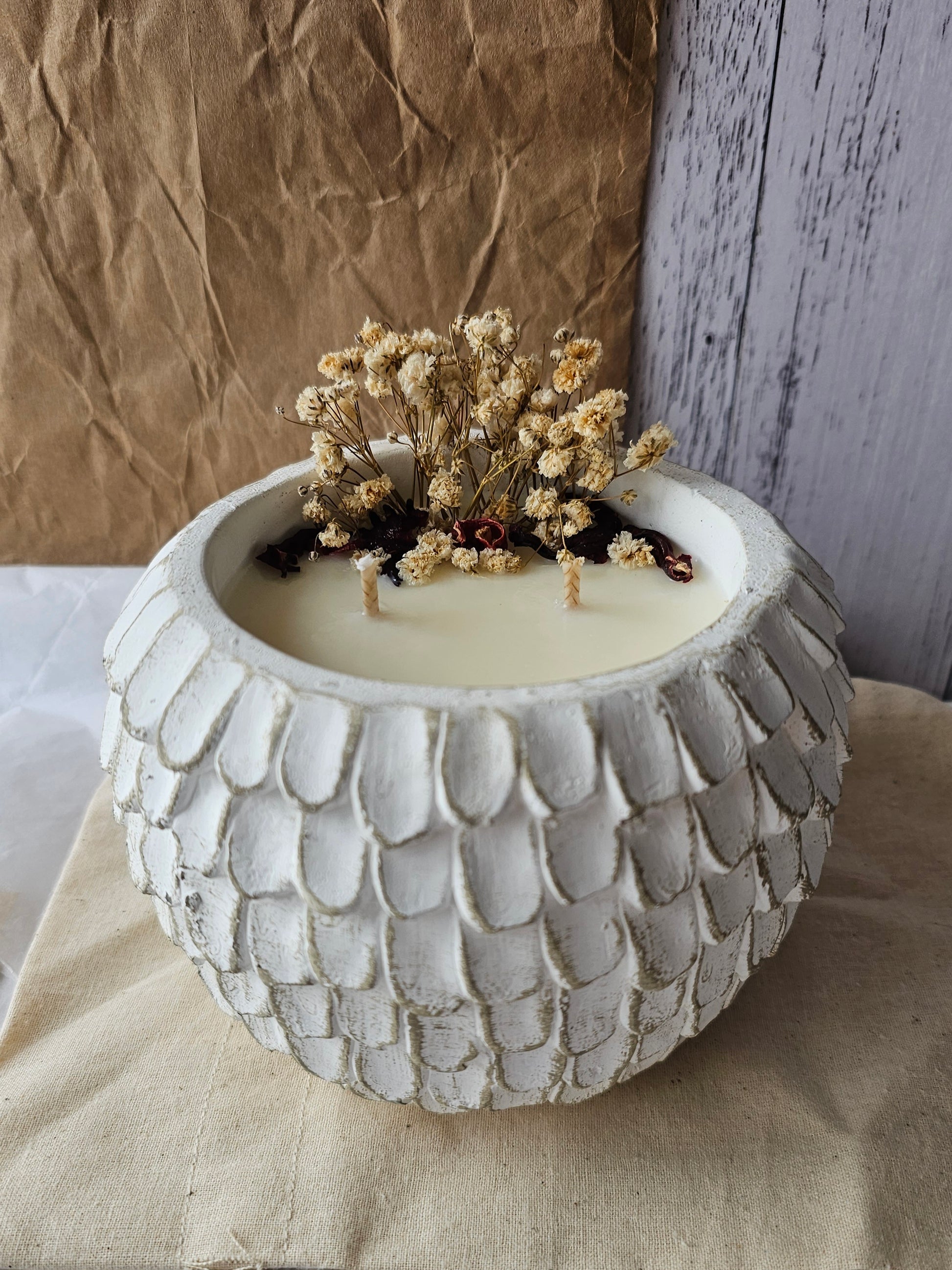 Note: Candle made for Homedecor, for use as a burn candle please take off all flowers and accessories.